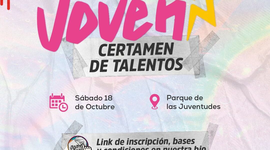 El certamen “Talento Joven”, impulsado por la Secretaría de Juventudes del Gobierno de La Rioja, se realizará el sábado 18 de octubre en el Parque de las Juventudes, convocando a jóvenes de entre 13 y 30 años a participar de manera individual o grupal con propuestas de música, danza y artes escénicas.