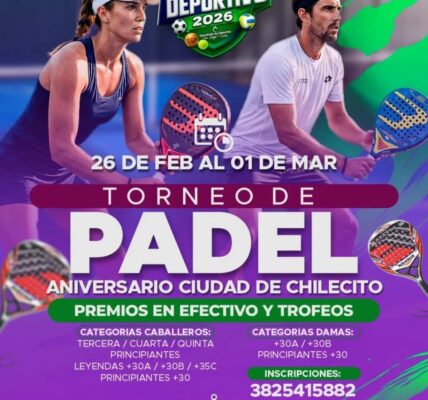 Se invita a participar en el Torneo de Pádel “Aniversario Ciudad de Chilecito”.