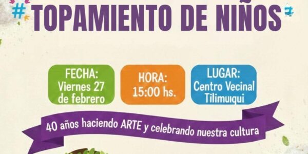 En Tilimuqui, este VIERNES 27 DE FEBRERO, a partir de las 15:30 HS, la Plaza Principal del Pueblo se llena de alegría con el GRAN TOPAMIENTO DE NIÑOS