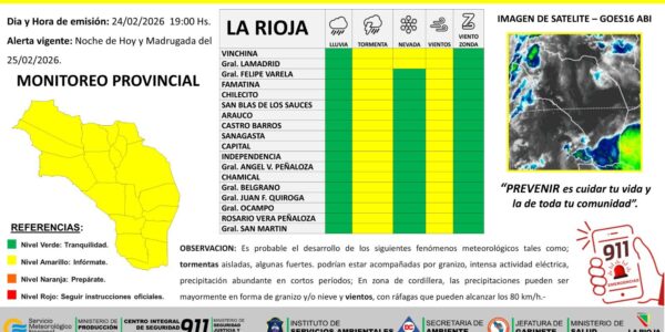 Emiten Alerta Amarilla por tormentas y viento para toda la provincia de La Rioja