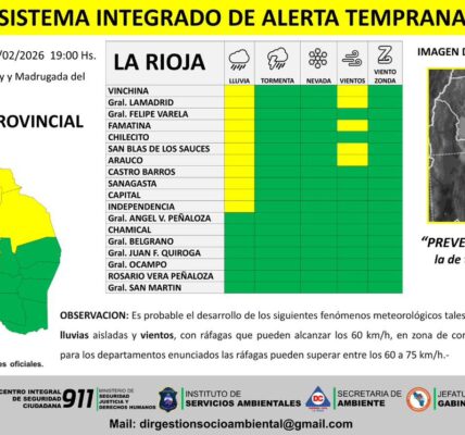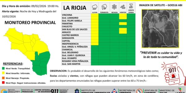 El Sistema Integrado de Alerta Temprana (SIAT) emitió un alerta amarilla por la probable ocurrencia de tormentas aisladas y vientos para todo el territorio provincial.