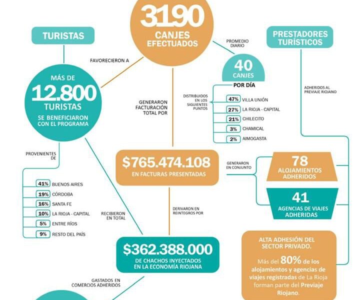 El Observatorio Económico del Turismo de La Rioja dio a conocer el balance final sobre el desempeño del programa, desarrollado entre el 27 de septiembre y el 23 de diciembre, período en el que se registró un importante movimiento turístico y comercial en la provincia. Durante este lapso, se presentaron facturas por $765.474.108, mientras que el volumen operado en Chachos alcanzó los $362.388.000, reflejando la confianza de prestadores y comercios en esta herramienta y su aporte a la dinámica económica del turismo.