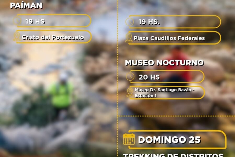 Agenda completa en web : https://turismo.municipalidadchilecito.gob.ar/actividades/