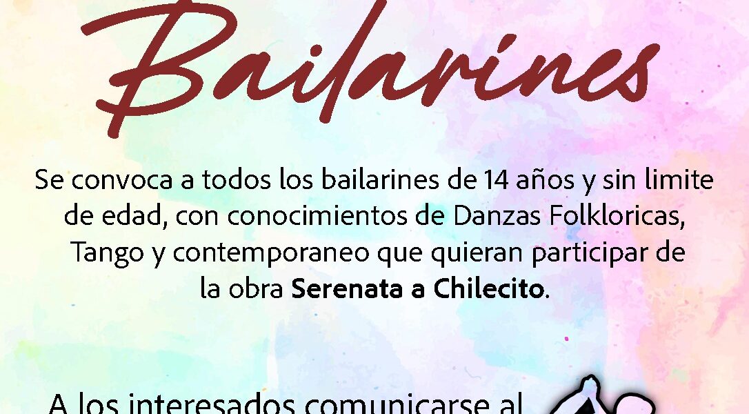 Se invita a bailarines y bailarinas a participar de la obra “Serenata a Chilecito”.