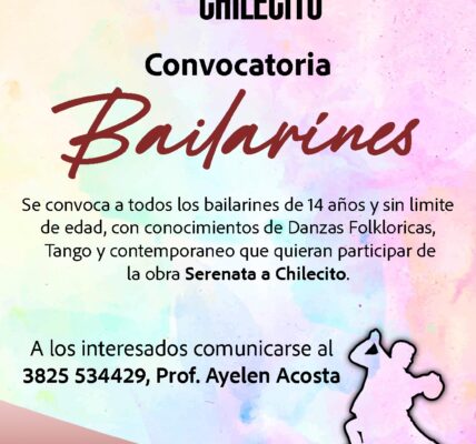 Del 26/01 al 04/02 – Comunicarse con Prof. Verónica 3825665739 – Secretaria de Cultura de la Municipalidad del Departamento Chilecito