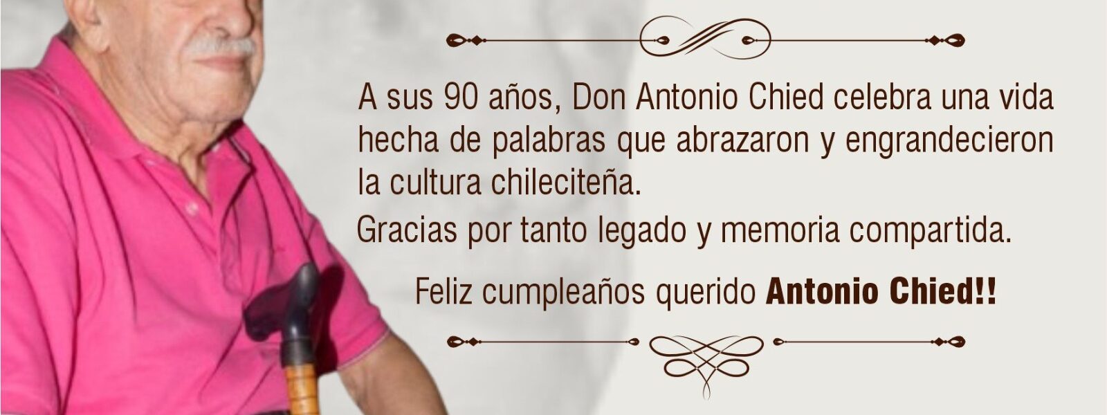 Saludamos con profundo cariño a Don Antonio Chied, en el día de su cumpleaños número 90