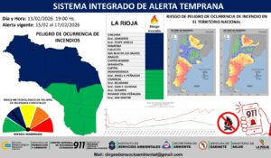El riesgo de incendio es moderado y alcanza a los departamentos Vinchina, General Lamadrid, General Felipe Varela, Famatina, Chilecito, San Blas de los Sauces, Arauco, Castro Barros, Sanagasta y Capital.