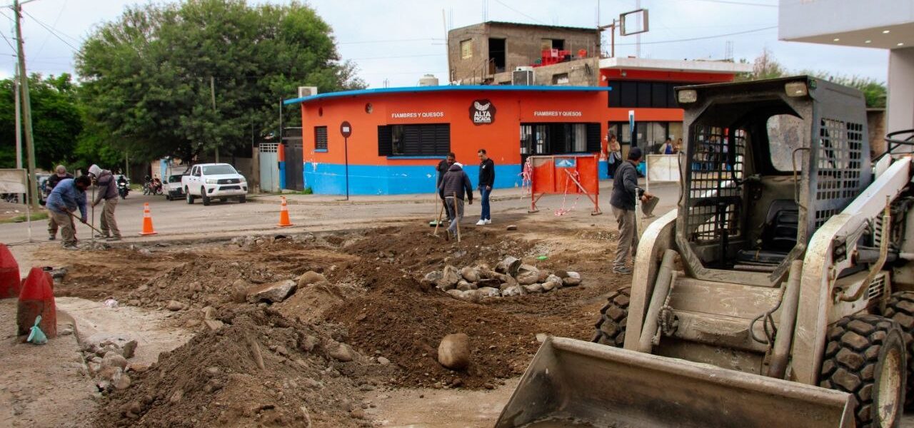 Continúan las tareas de mejoramiento de calzada en la intersección de 19 de Febrero y Roque Lanús, una obra clave para optimizar la circulación y la seguridad vial en el sector.