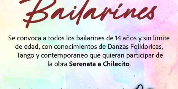 Se invita a bailarines y bailarinas a participar de la obra “Serenata a Chilecito”.